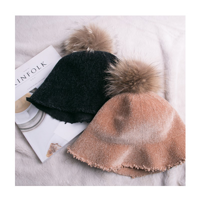 #라쿤 퍼 코듀로이 버킷햇 모자