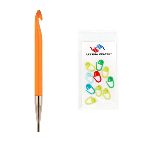 - Bundle includes 1 Knitter's Pride Trendz 6-inch (15cm) Tunisian/Afghan Interchangeable Crochet Hooks; Size N (10.0mm) with 10 Artsiga Crafts Stitch Markers 700318