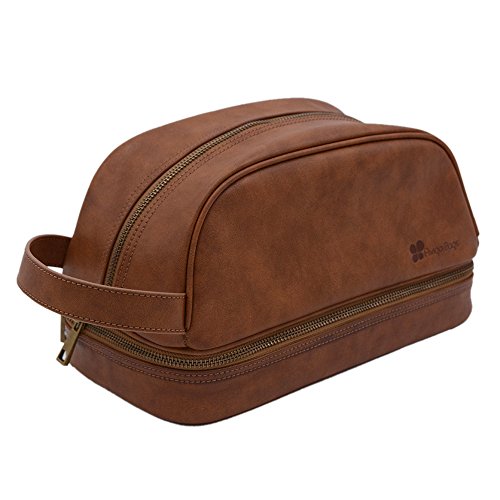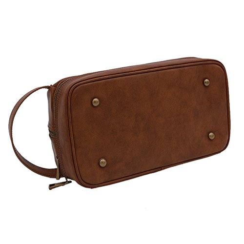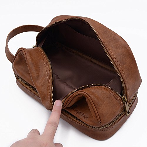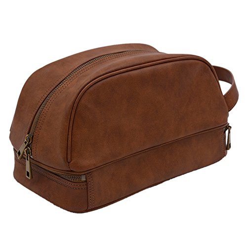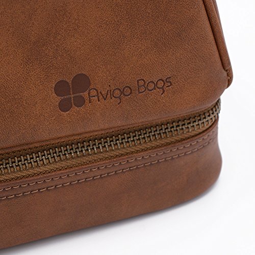 Avigo Bags Leather Toiletry Bag Dopp Kit Shaver Bag With Organizer Pocket and Accessory Holders | Brown