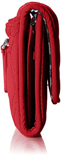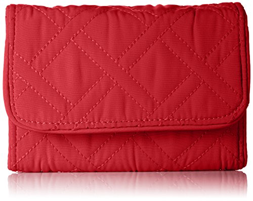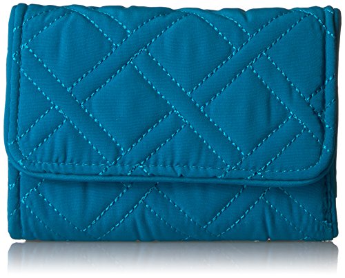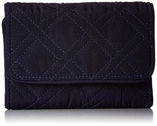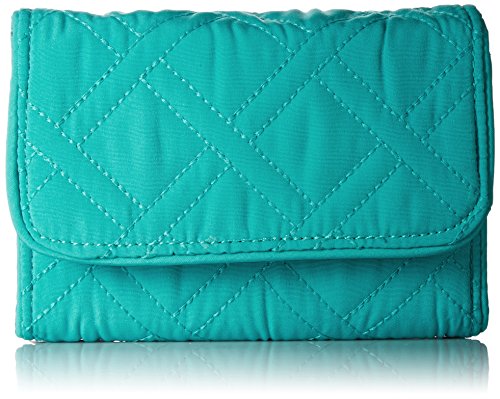 Made from lightweight, solid-colored microfiber. Provides rfid protection for credit and debit cards. Exterior features one slip and one zip pocket. Interior features 13 card slips, two bill slips, one id window and a zip pocket. Accommodates euros. Two pin-snap closures.