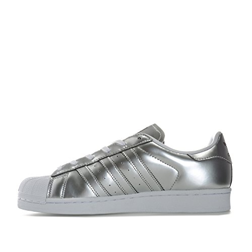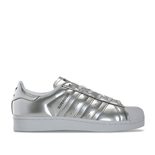 Studio : adidas Originals Publisher : adidas Originals Binding : Apparel Product Description Womens adidas Originals Superstar Trainers in silver metallic.- The iconic Superstar trainer gets a shimmering metallic makeover.- Mirror-metallic synthetic leather upper. - Classic rubber shell toe.- Synthetic leather lining to heel.- Serrated 3-Stripes to sides.- Printed Trefoil logo on tongue and heel patch.- Removable insole.- Herringbone-pattern rubber cupsole.- Synthetic upper, Synthetic and textile lining, Synthetic sole.- Ref: CG3681 0