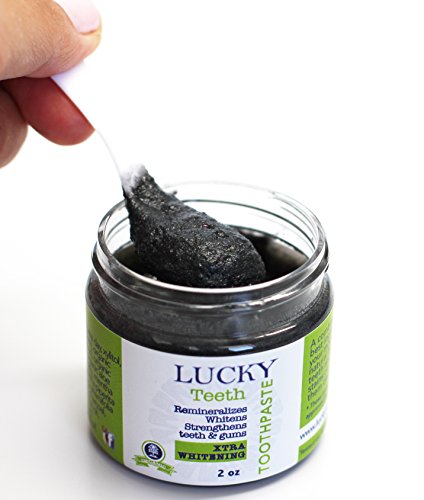 Lucky Teeth Organic toothpaste- MIXED -Charcoal + Regular (White) -all Natural, Remineralizes and Fortifies Teeth and Gums. (2 Bottles)