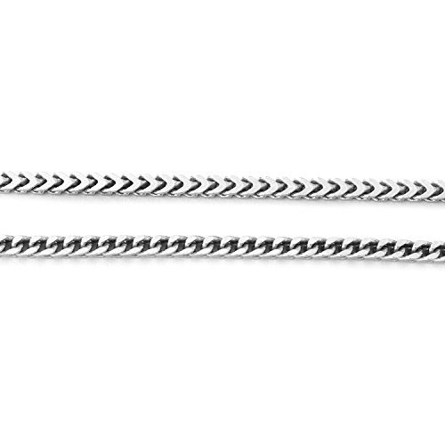 - Feature : This necklace is made of sterling silver and is covered with rhodium, so it won't tarnish or change color with time. / Necklace is made in ITALY and has a solid quality. / Necklace is 2.7mm thick and is available in: -18 inch long (weight: 14.8 gram); -20 inch long (weight: 17.3 gram); -22 inch long ( weight: 19.0 gram); -24 inch long (weight: 21.1 gram); -26 inch long (weight: 22.6 gram); -28 inch long (weight: 23.9 gram): -30 inch long (weight: 25.3 gram). / Comes with a gift box and free shipping. / Refer to the picture on the model to get the idea about length. Model is size american male M, neck - 16".