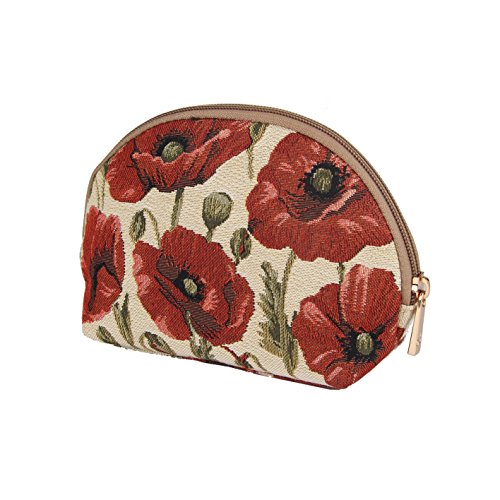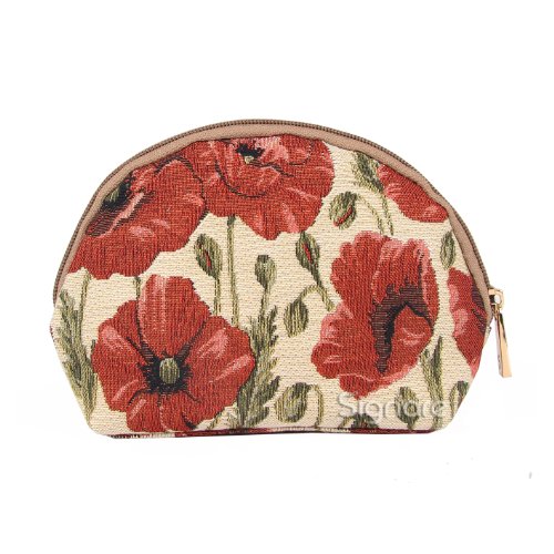 Signare Tapestry Makeup Bag Travel Cosmetic Bag Brush Bag for Women Girls with Poppy Flower (COSM-POP)