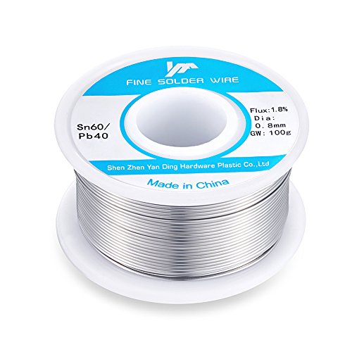 60-40 Tin Lead Rosin Core Solder Wire Reel Roll for Electrical Desoldering Wick 100g/0.22LB/4OZ 0.8mm/0.03 Inch Flux 1.8%