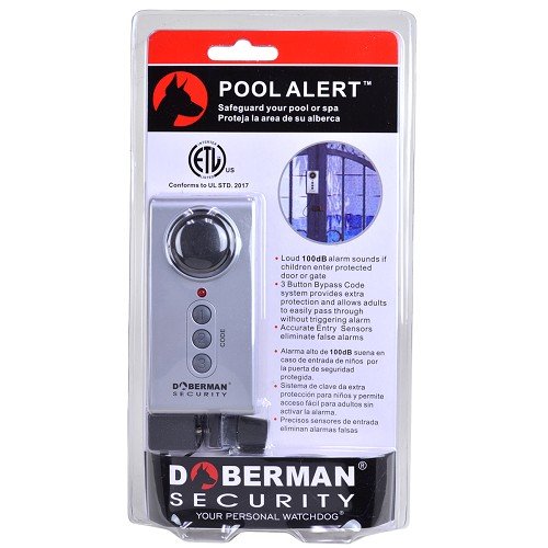- Feature : DOBERMAN SECURITY POOL ALERT / Etl listed and conforms to UL standard 2017 / Loud 100 decibel alarm / Easy simple installation / 3 button code system allows adults to pass through pool gate