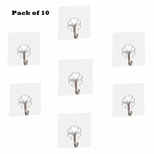 Kinteshun Non-trace Heavy-duty adhesive Hooks Stick-on Hangers,Resuable and Waterproof(10pcs Hook with 2pcs Cleaning Alcohol Cloth)