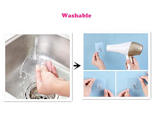 - ADVANTAGES-Max. load 33 lb/15Kg.Needn't damage the wall by punching hole and no trace on it.Waterproof,oil resistance,reusable and washable(cleaned by water and dried up by hair drier,then can be used again).