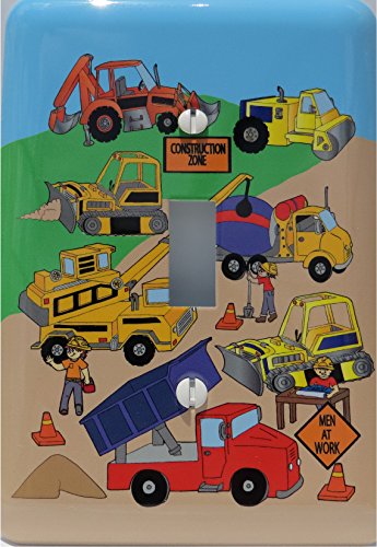 -. Feature : Metal Construction Light Switch Plates / Single Toggle / Construction Theme with Bulldozers, Tractors, Cement Truck, Steamroller, Crane, and Dump Truck Switch Plate / This Construction Switch Plates are metal covers that measure about 3.5in by 5in and fits most Light switch openings / The inks used to P.R.Int directly on our Metal Switch Plates are Fade and Scratch resistant and has a easy to clean gloss finish / Each of our Consturction Light Switch Covers comes complete with white colored screws for easy assembly / Original artwork designed and manufactured to compliment our matching Construction Wall Decals by Presto Chango Decor