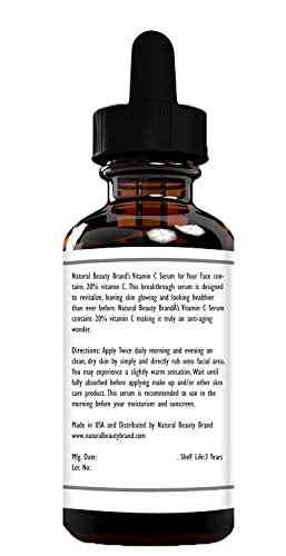 -. Feature : POWERFUL ANTI-AGING PROPERTIES are in this Super Triple Action 20% Powerful Vitamin C Serum If you want to neutralize free radicals and give your skin what it needs to fight wrinkles, then you want our Vitamin C Serum / ALL-NATURAL INGREDIENTS mean healthy, consistent, and worry-free results. Far too many anti-aging products have chemicals as their ingredients, but we've only opted to use completely natural and safe made in USA ingredients / YOU WILL LOOK MUCH YOUNGER with this remarkable formula. Thanks to its ability to dramatically boost all-important collagen production, our serum is guaranteed to reduce the depth of wrinkles. / BENEFIT FROM HYALURONIC ACID, which is an amazing beauty secret. Hyaluronic acid serum can help with not only the texture of skin, but also brightness. You'll see your facial wrinkles and lines start to disappear and that your skin becomes softer. / PROTECT FROM UV DAMAGE. Not only does our Vitamin C Serum protect your skin from UV damage but it also helps to actually REVERSE existing damage. If you believed that there was no hope for your sun-damaged skin, then you must try this Vitamin C Serum. It plumps up and moisturized skin so that you look younger and our powerful Tetrahexyldecyl Ascorbate provides both UV and DNA protection!