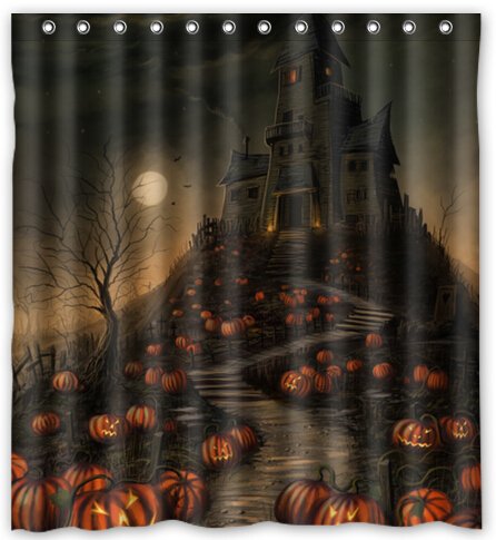 -. Title : BravoVision Custom Halloween House Witch Bat Waterproof Polyester Fabric Shower Curtain 66" x 72"