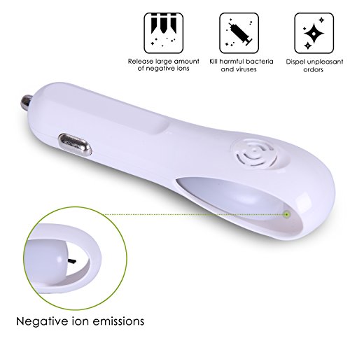 - Car air purifier produces negative ions that actually improve the air quality by destroying odor-causing particulates rather than simply covering up the smells