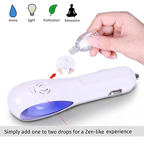 HDE Car Air Purifier and Essential Oil Diffuser Ultrasonic Air Refresher Ionizer Humidifier Removes Smoke Bad Odors Dust and Allergy Causing Pollen (Glossy White)