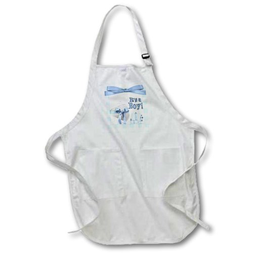 3dRose apr_40754_4 Its a Boy Blue Maternity Full Length Apron with Pouch Pockets, 22 by 30-Inch, Black, with Pockets