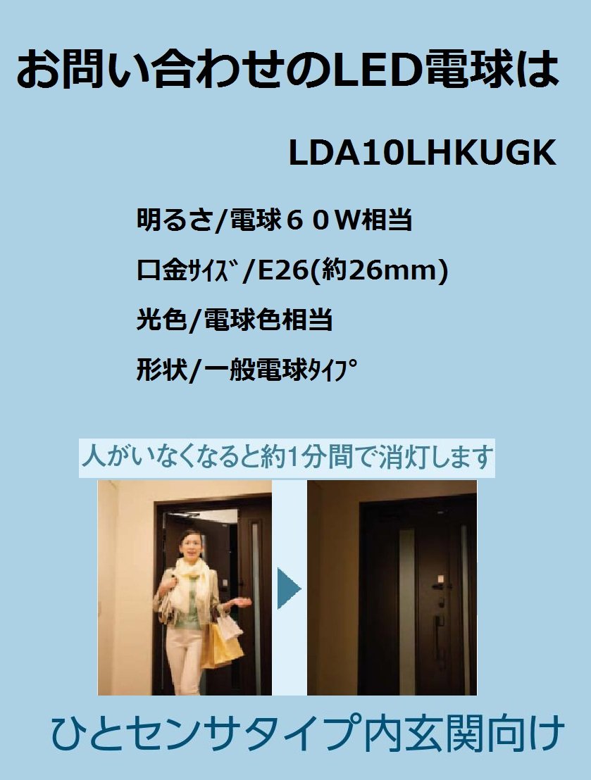 Panasonic LED bulb base 26 mm diameter bulb 60 W type equivalent to bulb color (10.0 W) General bulb / person sensor type LDA 10 LHKUGK for inside entrance
