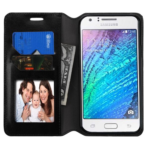 -. Binding : Wireless Phone Accessory -. Brand : THE SMART CHOICE -. Color : Black -. Feature : Specially designed Samsung Galaxy J7 2015 / J700. / Folio Style Wallet Case: few card slots and inner pocket for carrying ID, cash and credit cards / Media Stand Feature: Built-in stand for horizontal media view / Constructed from high quality PU leather (note this is not the same as genuine or 100% leather) + Magnetic clip design / Provides maximum protection and prevents scratches, chips and dirt from accumulating. -. Label : the smart choice -. Manufacturer : the smart choice -. PackageQuantity : 1 -. ProductGroup : Wireless -. ProductTypeName : WIRELESS_ACCESSORY -. Publisher : the smart choice -. Studio : the smart choice -. Title : Galaxy J7 2015 Phone Case ,The Smart Choice (Tm) Samsung Galaxy J7 2015 Wallet Pouch Cover Case Fold Stand Case Premium Leather Wallet Fip Case Pu Leather with Card Slots