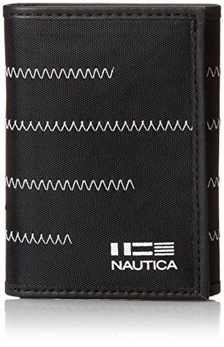 Nautica Men's Fabric Trifold with Zig Zag Stitch Accent, Black, One Size