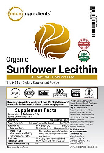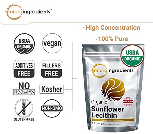 Made in USA & USDA Certified Organic Sunflower Lecithin Powder. Cold-Pressed. No Soy. 100% pure, vegan, no additives or preservatives, fillers free, non-gmo, gluten-free, no artificial colors or flavors.