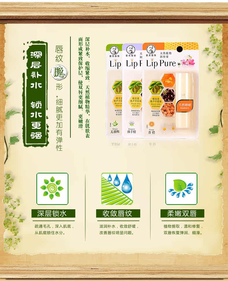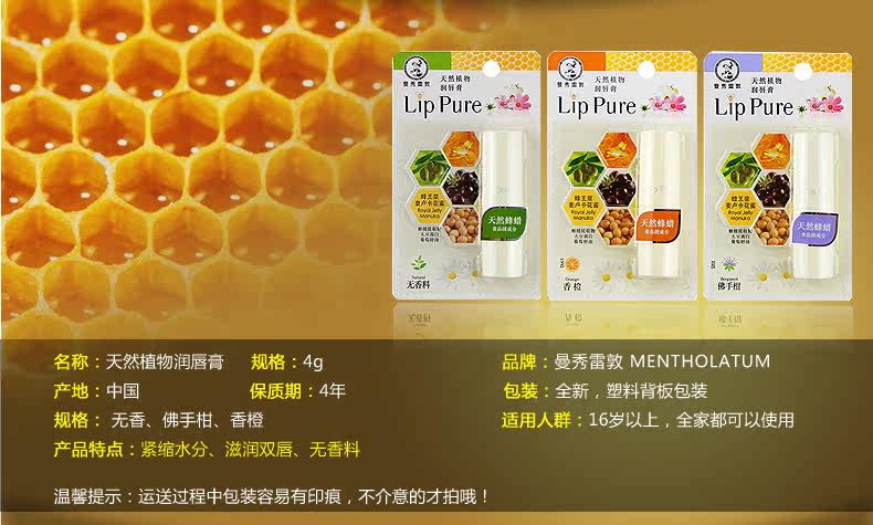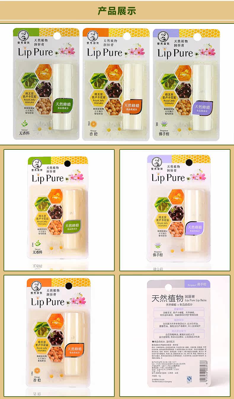 • 曼秀雷敦天然植物润唇膏4g无香料香橙佛手柑无色保湿滋润男女护唇