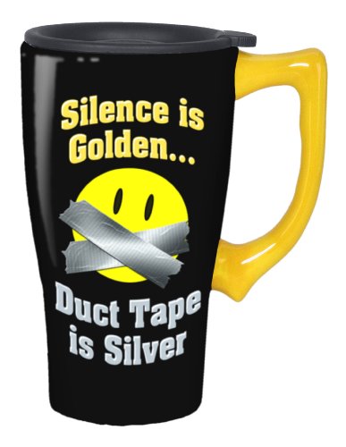 Spoontiques Silence is Golden Duct Tape Travel Mug, Black