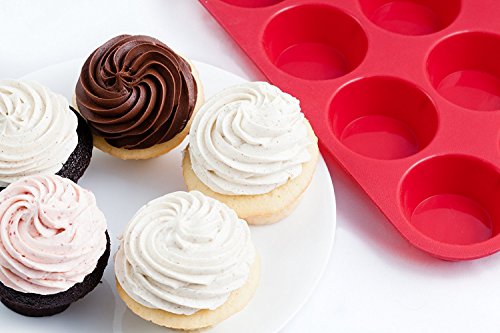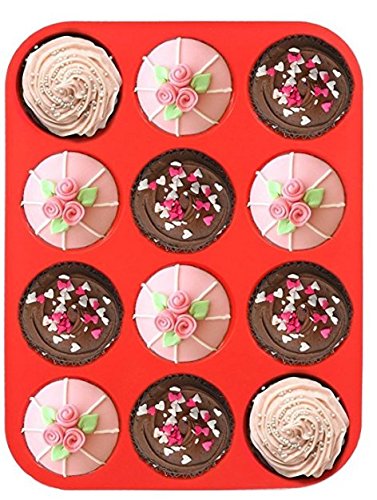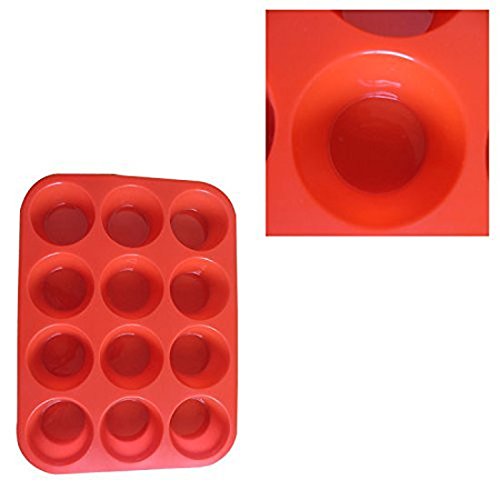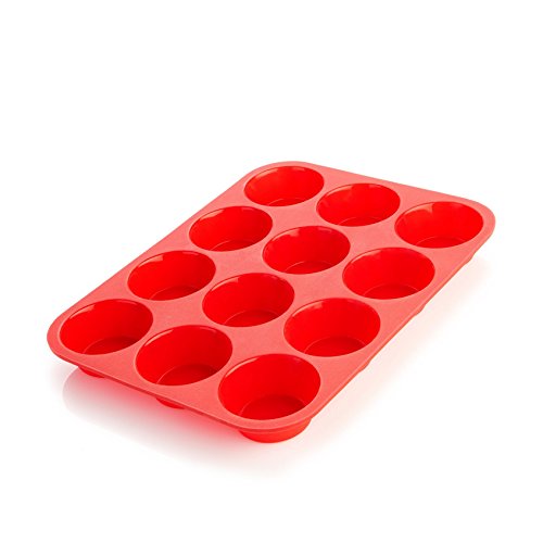 Silicone 12-Cup Muffin Pan, Red, Cupcake Baking Pan / Non - Stick Silicone Mold / Dishwasher - Microwave Safe