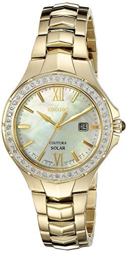 Never one to blend in, you'll love the stand-out style of the Seiko Women's Couture Solar Diamond Bezel watch. This exquisite timepiece is designed with a stainless case and bracelet and features a mother-of-pearl dial with 24 dazzling diamonds that surround the bezel. Complete with a beautiful cabochon crown, this stunning timepiece puts the perfect finish on both your career and casual ensembles.Feature