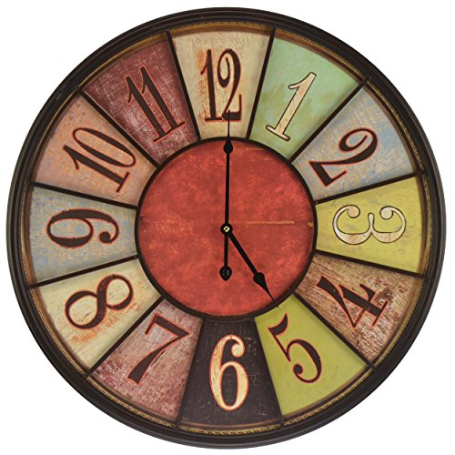 -. Title : Large Hanging Metal Wall Clock Round Multi-Color Vintage Style