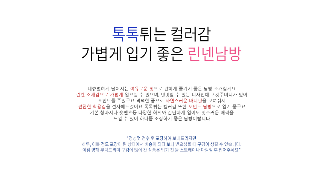 | 소재(Material) | 면(cotton/)55%+린넨(linen/)45% | |