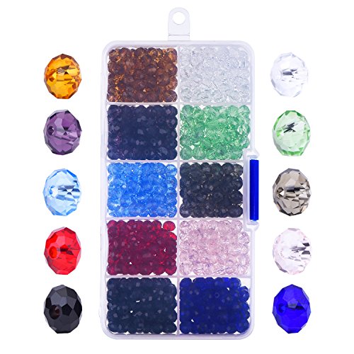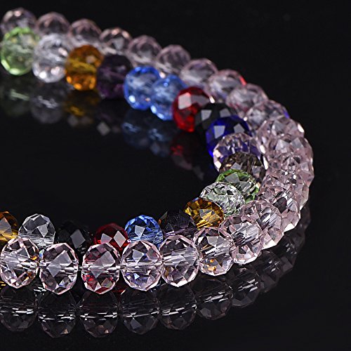 Outus 800 Pieces 6mm Briolette Faceted Glass Beads Crystal Rondelles Bead with Box and Clean Cloth
