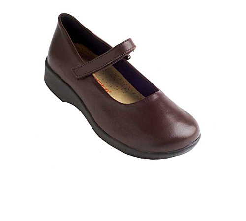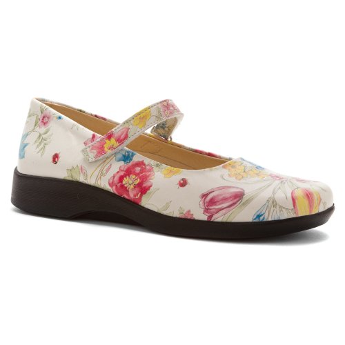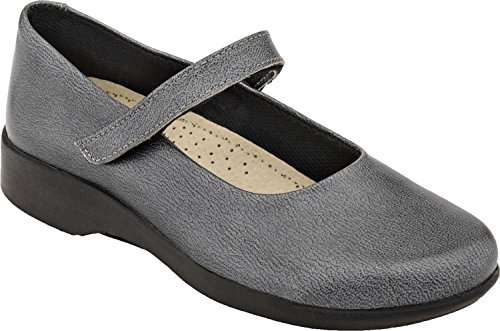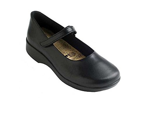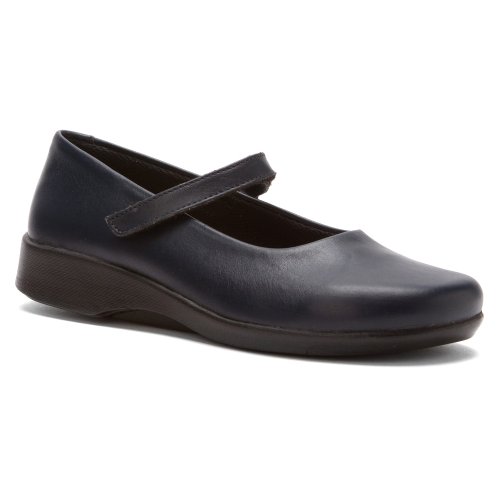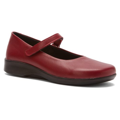 See yourself in the sweet style of the Arcopedico Scala mary jane. This low-heeled women's flat boasts a premium leather, metallic leather, or suede upper for a flexible fit and feel, with an adjustable hook-and-loop instep strap for a secure and snug fit; the cushioned footbed features an anatomic design that allows for proper weight distribution to prevent foot and leg fatigue. An antimicrobial Sansmell� deodorizing system in the lining lends a fresher foot environment. The grippy polyurethane sole of the Arcopedico Scala ballerina shoe delivers shock-absorbed ease.Feature