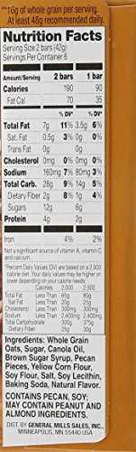 -. Feature : 12-count box (total of 144-count boxes) / Made with pecan pieces, oats, and crisp rice nets / 100% natural; no cholesterol or trans fat; high in fiber and protein / Excellent source of whole grain with 16 grams per serving (at least 48 grams recommended daily) / Packed in pouches with two bars per pouch; easy, wholesome snack to bring along wherever you go