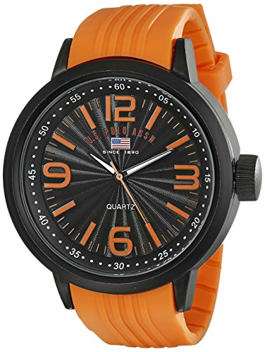 -. Binding : Watch -. Brand : U.S. Polo Assn. -. Department : mens -. EAN : 0030506253884 -. Feature : Round watch with flag logo on scalloped dial and alternating Arabic and baton-shape hour markers50 mm stainless steel case with mineral dial window / Japanese quartz movement with display / Rubber band with buckle closure and center ridges / Not water resistant -. Label : U.S. Polo Assn. Sport -. Manufacturer : U.S. Polo Assn. Sport -. Model : US9053 -. MPN : US9053 -. PackageQuantity : 1 -. PartNumber : US9053 -. ProductGroup : Watch -. ProductTypeName : WATCH -. Publisher : U.S. Polo Assn. Sport -. Studio : U.S. Polo Assn. Sport -. Title : U.S. Polo Assn. Sport Men's US9053 Stainless Steel Watch with Orange Band -. UPC : 030506253884