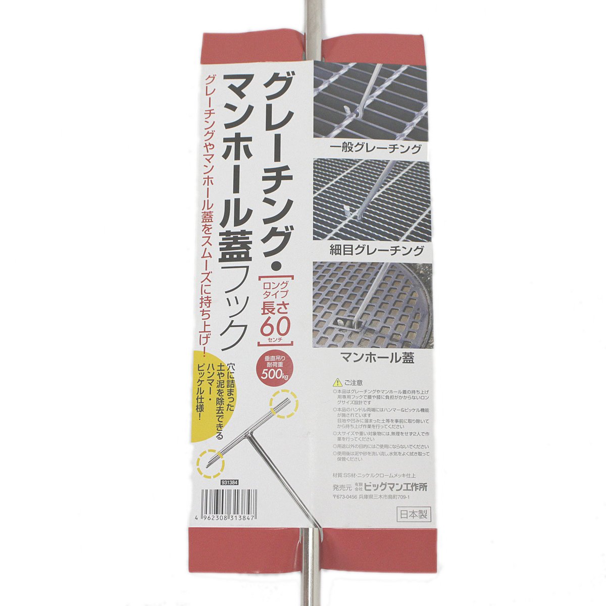 Long type smoothly lifting grating and manhole cover Length 60 cm Hammer · Pickle specification capable of removing soil and mud filled in a hole Vertical hanging load capacity: 500 kg