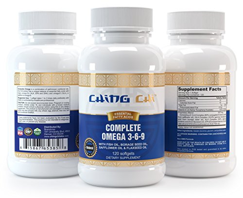 Complete Omega 3-6-9 | Non-Gmo | Extra Strength Essential Fatty Acids | With Fish Oil, Borage Seed Oil, Safflower Oil, Flaxseed Oil | 120 Softgels