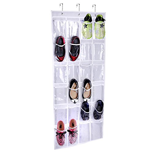 -. Title : 24 Grid Over Door Shoe Storage Bags Organizer ShineMe Non-woven Fabrics Clear Pockets with 3 Hooks Hanging for Kitchen Home Bedroom Postcards Storage Rack Closet Clothes Pouch