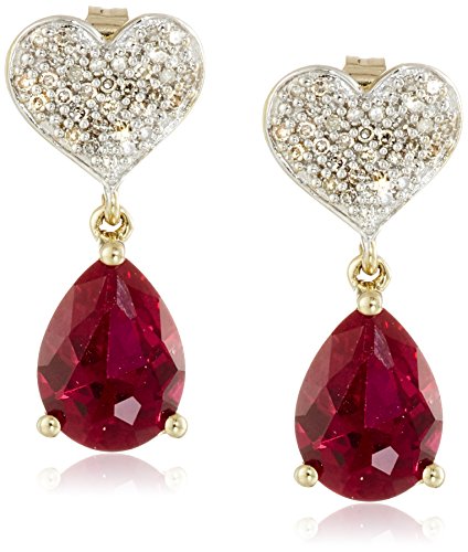 -. Title : 10k Yellow Gold Heart Diamond Pave with Created Ruby Teardrop Earrings (1/10cttw, I-J Color, I2-I3 Clarity)