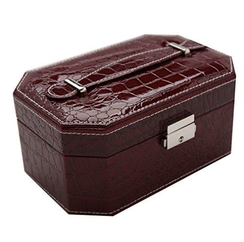 KUKI SHOP Synthetic Leather 2-Layer Large Capacity Portable Jewelry Storage Organizer Box Case ...