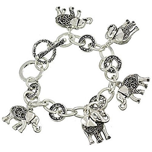 -. Feature : Elegant Elephant Charm Bracelet / Clear Crystals Stud some of the Beautiful Elephants / Silver Tone Bracelet Elephants have a Marcasite Look Pretty Toggle Clasp / Fast and Free Shipping in the USA / Shipped in a Gift Box