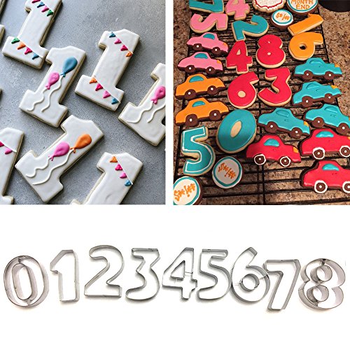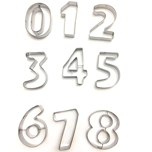 Numbers Cookie Cutters 3 Inches 9pcs Jelly Fondant Cutter set, Stainless Steel, Large Number cutter (3'' Number cutter)