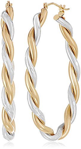 -. Binding : Jewelry -. Brand : Amazon Collection -. Color : multi-colored -. Department : womens -. EAN : 0696737001276 -. Feature : Oval hoop earrings in intertwined yellow gold and sterling silver / Click-top back finding / Pieces in the Bonded collection are not painted or dipped. Each piece contains a layer of karat gold and sterling silver and should be cared for like karat gold jewelry. / Great for everyday wear / Made in USA -. Label : Amazon Collection -. Manufacturer : Amazon Collection -. Model : E14-1250AGDC-2C -. MPN : E14-1250AGDC-2C -. PartNumber : E14-1250AGDC-2C -. ProductGroup : Jewelry -. ProductTypeName : FINEEARRING -. Publisher : Amazon Collection -. Studio : Amazon Collection -. Title : 14k Yellow Gold-Bonded Sterling Silver Twisted Hoop Earrings -. UPC : 696737001276