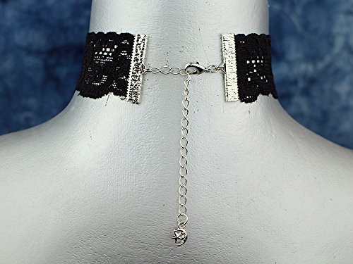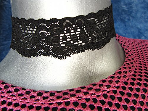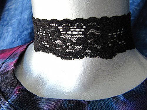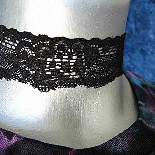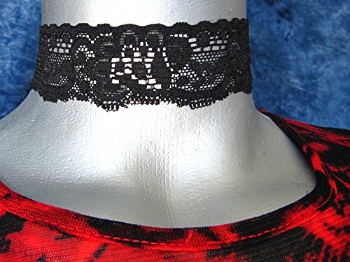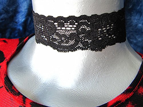 Twilight's Fancy Floral Elastic Stretch Lace Choker Necklace (Small, Black)