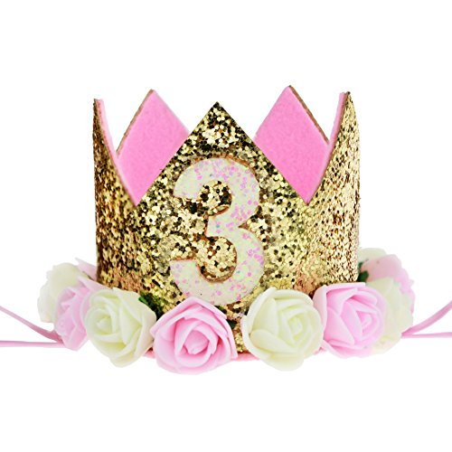 Gold Glitter First Birthday Crown.
