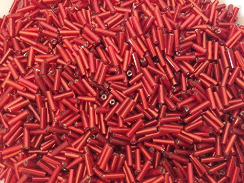 Czech Bugle Beads 40 gr / 1.4 oz Ruby Red Glass Tube Size #3 7mm