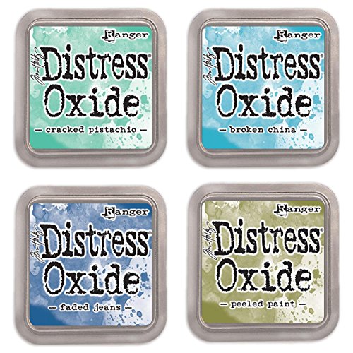 Ranger Tim Holtz Distress Oxide Ink Pads Bundle of 4 Colors - Cracked Pistachio, Broken China, Faded Jeans and Peeled Paint