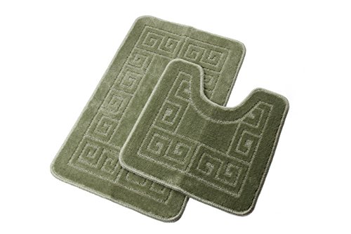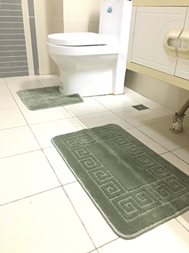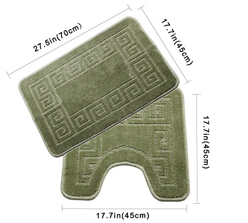 Homcomoda Bathroom Contour Rug Set Washable Bath Shower Mat with U-shaped Toilet Rug for Bathroom Absorbent Non Slip Polypropylene Fiber Bath Floor Rugs (Green)