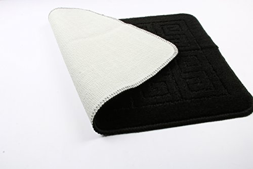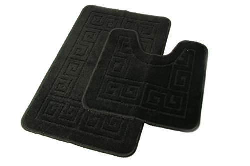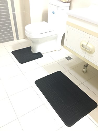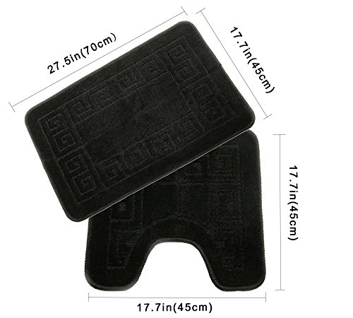 Homcomoda Bathroom Contour Rug Set Washable Bath Shower Mat with U-shaped Toilet Rug for Bathroom Absorbent Non Slip Polypropylene Fiber Bath Floor Rugs (Black)