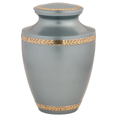 Augusta Pearl Gray Brass Urn by Silverlight Urns, Adult Cremation Urn for Ashes, 10 Inches Tall
