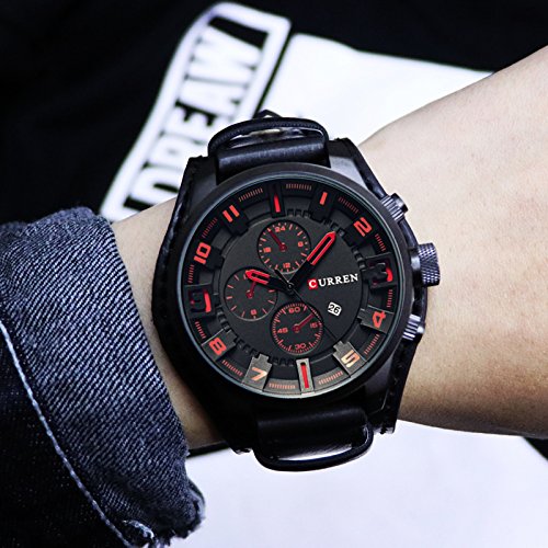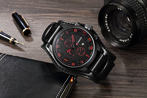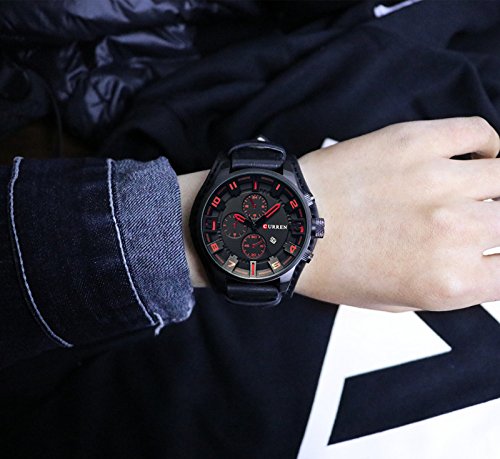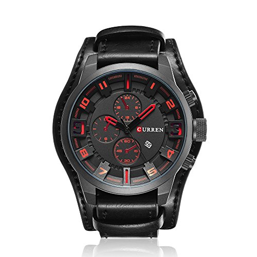 CURREN 손목시계 아날로그 표시 캘린더 레더 밴드 맨즈 워치 비지니스 스타일 블랙-A