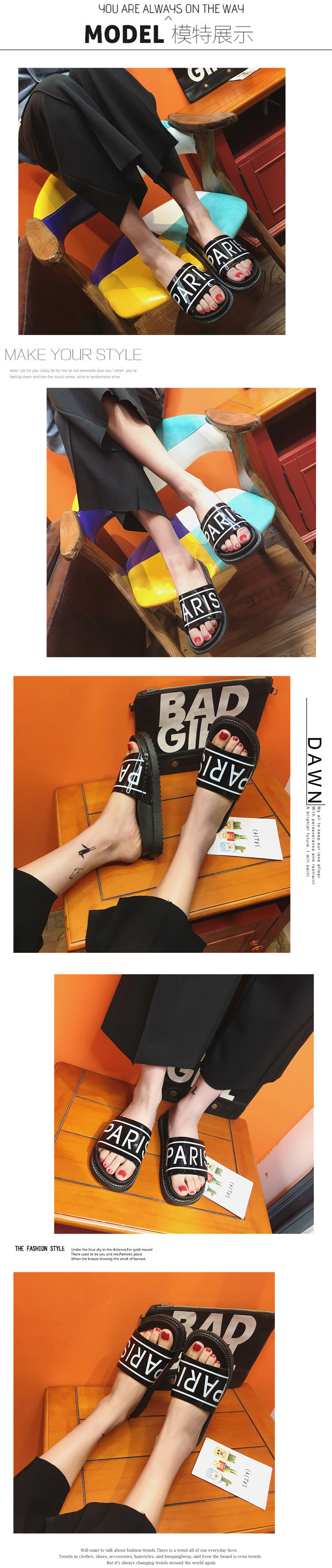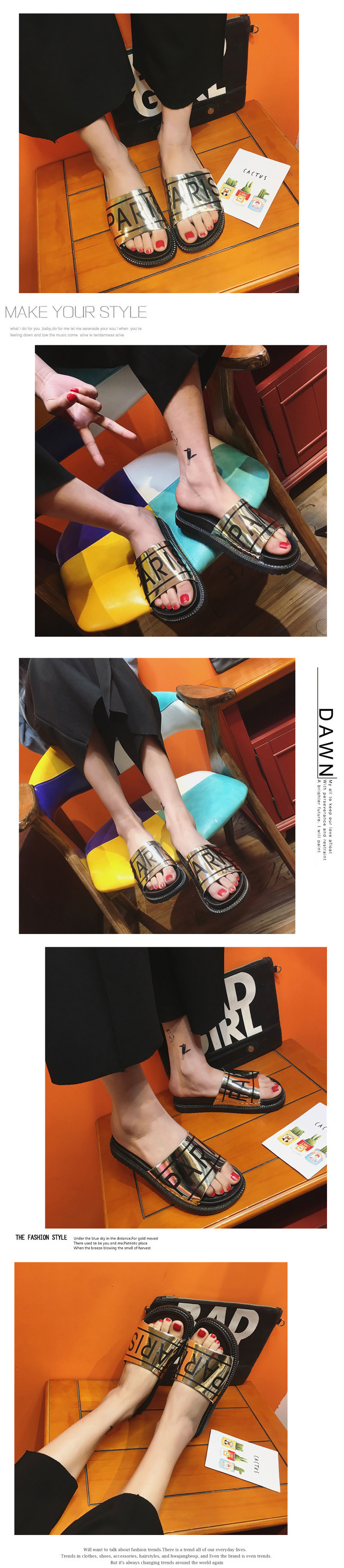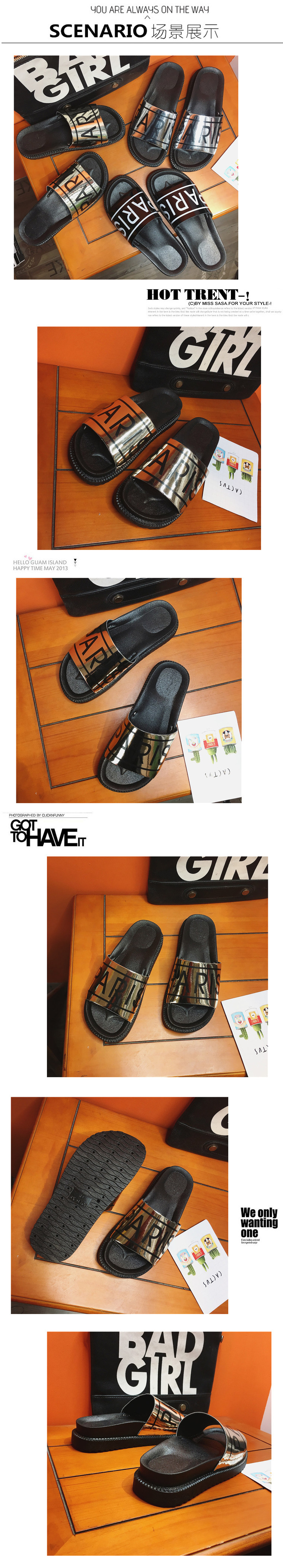 韩国原宿拖鞋女夏韩版时尚百搭平底一字拖防滑亮片凉拖鞋女沙滩鞋