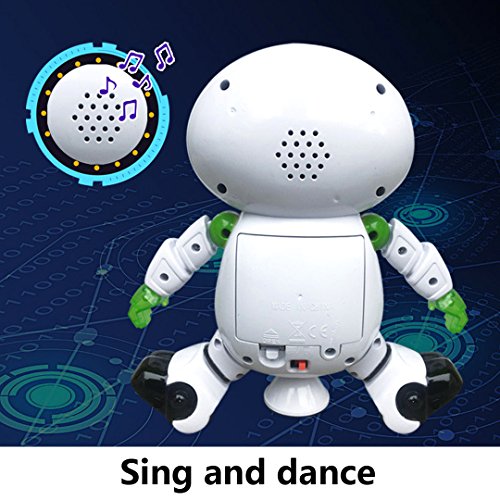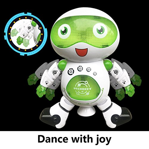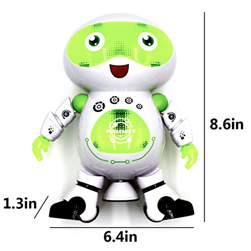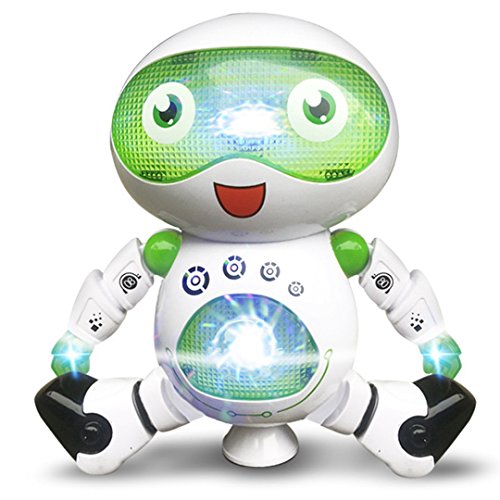 -. Feature : When you flip the switch on the robot body, the lively music comes on and it moves and dances. / Flashing Lights: the toy does not only dance, it also plays music and has flashing lights! / This robot toy can do a full 360 degree spin, its legs and arms will up and down for many cute dance routines. / Features: 1.5V Battery Operated(NOT INCLUDED),8.6in high,Flashing, Sounding.The robot will dance for hours and give your children delightful time / Perfect for kids ages 3 years old or above. The funny dance moves of the electronic toy will give your little one endless hours of fun, laughter and dancing